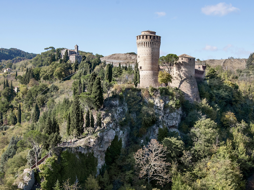 Inside the town, stone archways, narrow streets and an elevated walkway combine to create a place that rewards slow exploration. It serves both as a destination in its own right and as a jumping-off point for walks among the surrounding hills.